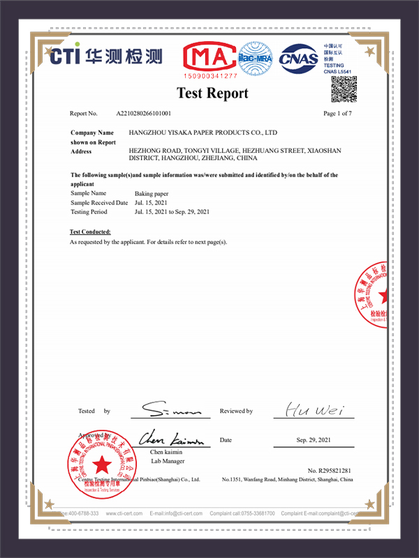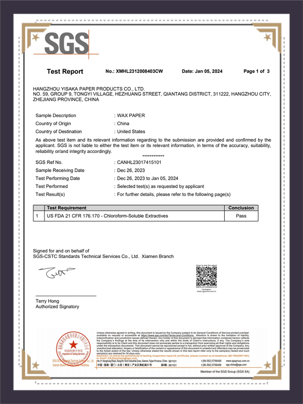 Wax Paper SGS -testausraportti